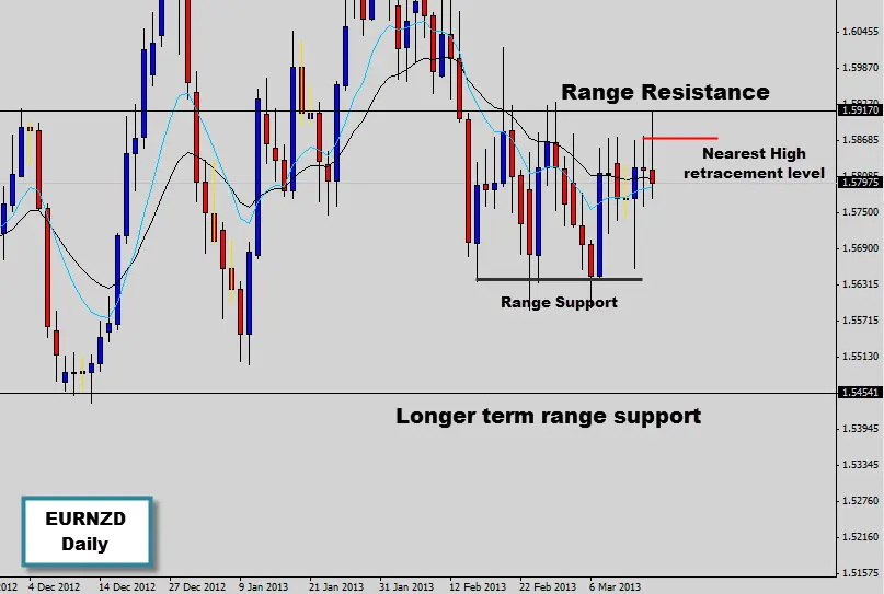 A nice bearish rejection signal has formed on the EURNZD chart at the close of last week’s trading session. This rejection candle is great in form, displaying a nice strong bearish close and is rejecting a strong resistance level, which is also the top of a shorter term & longer top range in this market.