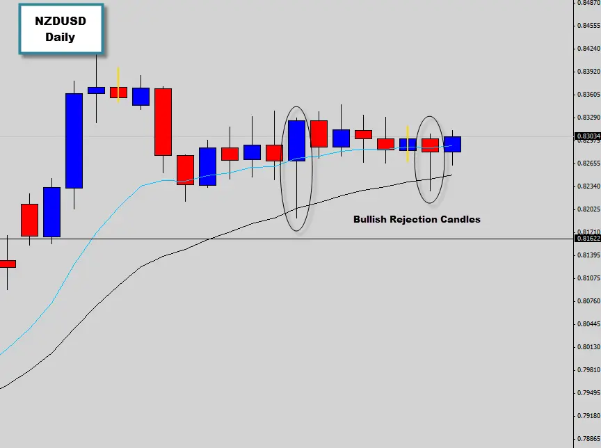 Last week we were looking into some bullish price action signals that developed off the mean value on the NZDUSD daily chart. The first signal was quite large and demonstrated clear rejection of lower prices. The market did stall and didn’t progress much in the next few trading sessions.